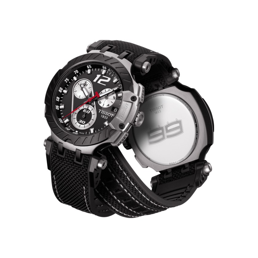 The brake disc bezel is one of its iconic features. The tissot t race motogp automatic chronograph limited edition has a strong character and many details inspired by motorbike racing. The transparent case back is inspired by the shape of a motorcycle wheel. Tissot t race chronograph.